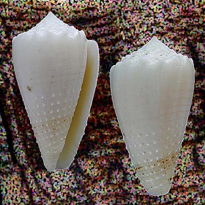 | Quality: | F++ White, with nodules in spira and pustulas along the shell, near siphonal channel. |